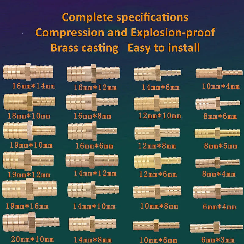 1pcs Brass 2 Way Reducing Straight Hose Barb Barbed Pipe Fitting Reducer Copper Coupler Connector Adapter for Air Fuel Gas Water